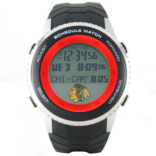 The Game Time Schedule Watch may be the coolest sports watch ever made. With games played on different days all season, it can be hard to keep track of every game. The Game Time Schedule Watch puts the entire NHL season on your wrist. Each Game Time NHL Schedule Watch comes pre-programmed with the entire NHL schedule. Each day you will see who your favorite team is playing, whether it is home or away, and what time the game starts. It will even play a tune when the game starts as a reminder, so you may never miss another game. At the touch of a button, you can scroll through your team s schedule, or the schedule of every NHL team. Look ahead to see future games any day of the season, or look back at games already played. Finally, Game Times patented technology allows your Game Time Schedule Watch to be updated each year.
