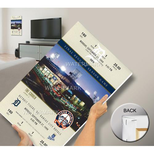 Officially licensed by MLB Mega Tickets are cutting-edge wall art. They are created from authentic game tickets enlarged 500% printed on archival canvas and professionally stretch-mounted. Perfect for autographs. Overall Size: 18(W) x28(H) x0.75(D).