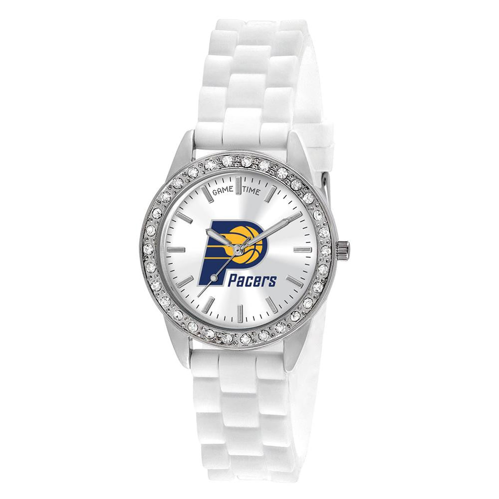 Hopefully your team's hotter than this frosty watch from Game Time! The Women's Frost Watch feature's an official team logo. Your team's color logo will stand out beautifully surrounded by the silver tone case and white silicone band. This is a must have for the female fan that's passionate about her sports team! Features: Stainless steel caseback. Silicone strap. Japan quartz movement. Sunray dial. Case size: 38mm. Water resistant to 3 ATM (99 ft.). Limited lifetime warranty. Officially licensed.