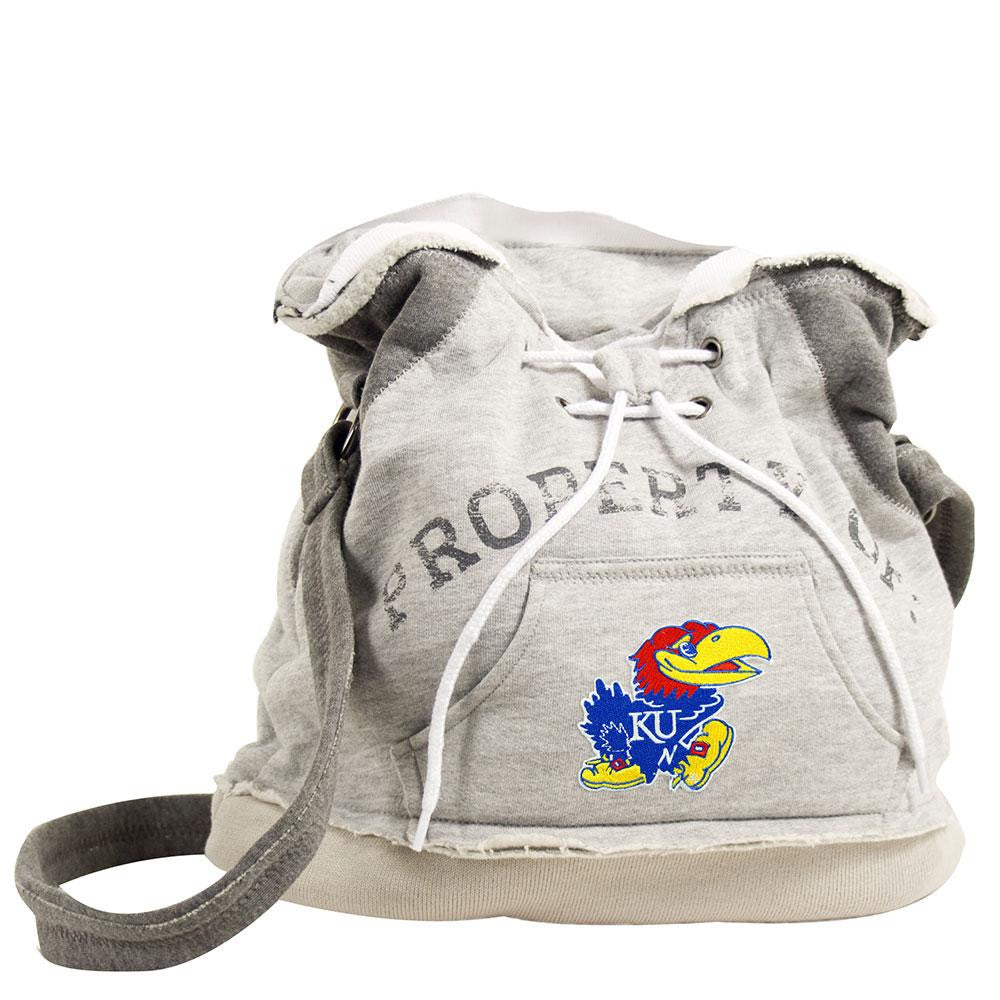 These purses take the authentic look and feel of your favorite team sweatshirt and craft them into purses that will give you that Saturday night style, even when you're heading off to the Sunday afternoon game. Vintage detailing and decorative lacing are just a few of the ways Littlearth offers their Sports Fan alternative ways to show spirit. Our Duffel features both a kangaroo pocket on the front and two internal patch pockets inside. This intentionally frayed Duffel has a sturdy magnetic closure and tied drawstrings used to create a classic look that is sure to become an essential fan favorite for years to come. Contrasting heather gray material on both the bottom and handles of the bag help to keep the Duffel looking clean. Each bag features a distressed PROPERTY OF and the Logo of your Team displayed largely on the front. Team Logo is an applique with decorative stitching for long lasting and dramatic effect. Classic look of a fan-favorite sweatshirt with the new look of a Hoodi
