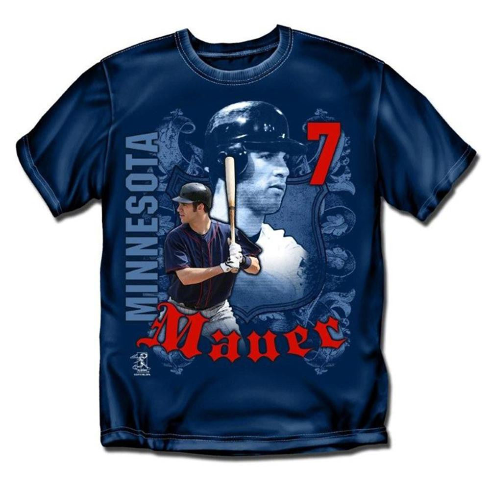 Minnesota Twins MLB Joe Mauer #7 Players Shield Mens Tee (Navy) (Medium)