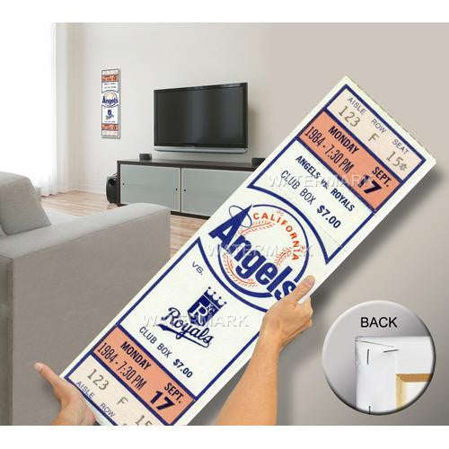 Officially licensed by MLB Mega Tickets are cutting-edge wall art. They are created from authentic game tickets enlarged 500% printed on archival canvas and professionally stretch-mounted. Perfect for autographs. Overall Size: 10(W) x34(H) x0.75(D).