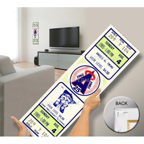 Officially licensed by MLB Mega Tickets are cutting-edge wall art. They are created from authentic game tickets enlarged 500% printed on archival canvas and professionally stretch-mounted. Perfect for autographs. Overall Size: 10(W) x34(H) x0.75(D).