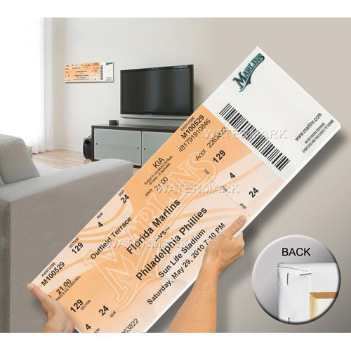 Officially licensed by MLB Mega Tickets are cutting-edge wall art. They are created from authentic game tickets enlarged 500% printed on archival canvas and professionally stretch-mounted. Perfect for autographs. Overall Size: 12(W) x34(H) x0.75(D).