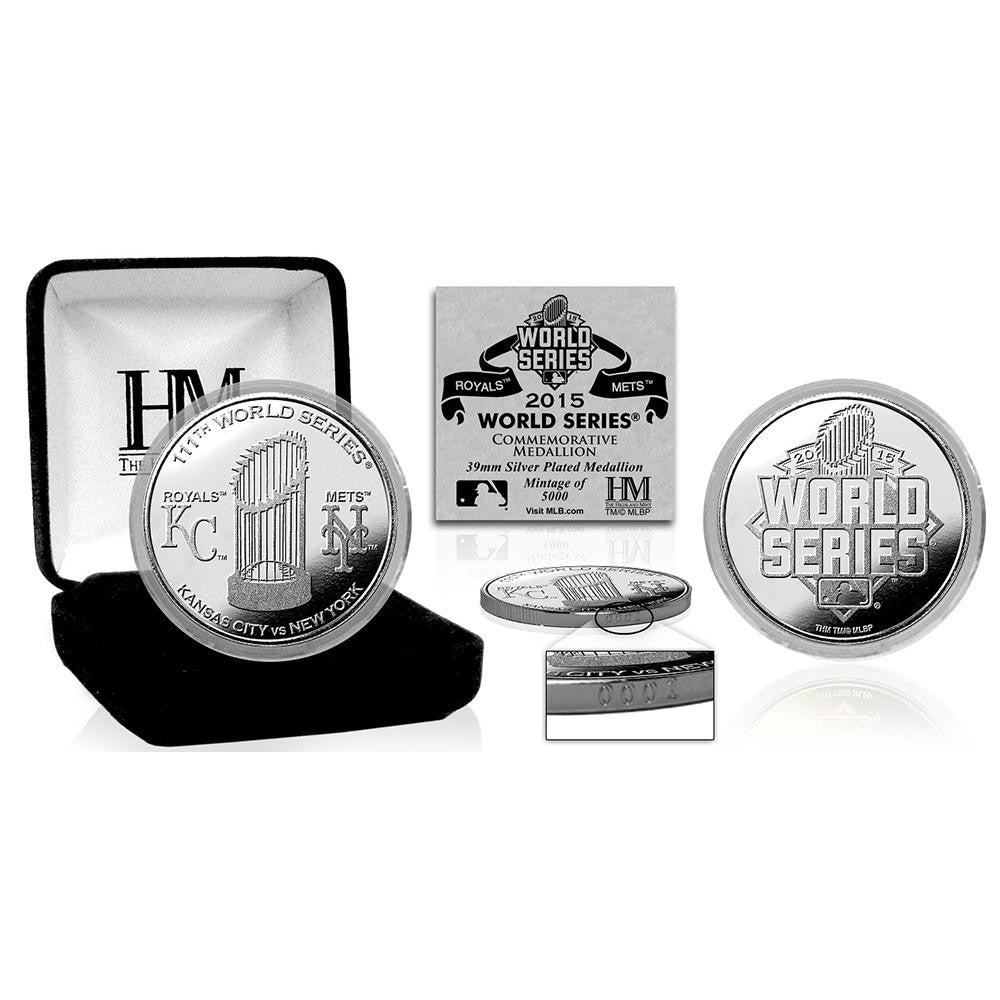 The 2015 World Series Dueling logo silver plated commemorative Mint Coin measures an incredible 39mm in diameter. The front of the coin is struck with the 2015 World Series Dueling logo. The reverse onethe Mint Coin is struck with the 2015 World Series logo . Each silver plated coin is engraved with its serial number on the edge validating its collectability. Each silver plated coin is protected in a clear capsule to preserve its condition and delivered in a black velour jewelry display box. This unique collectible coin is accompanied by a certificate of authenticity and it's a limited edition of 5,000! Officially licensed by the MLB and proudly made in the U.S.A. by The Highland Mint!