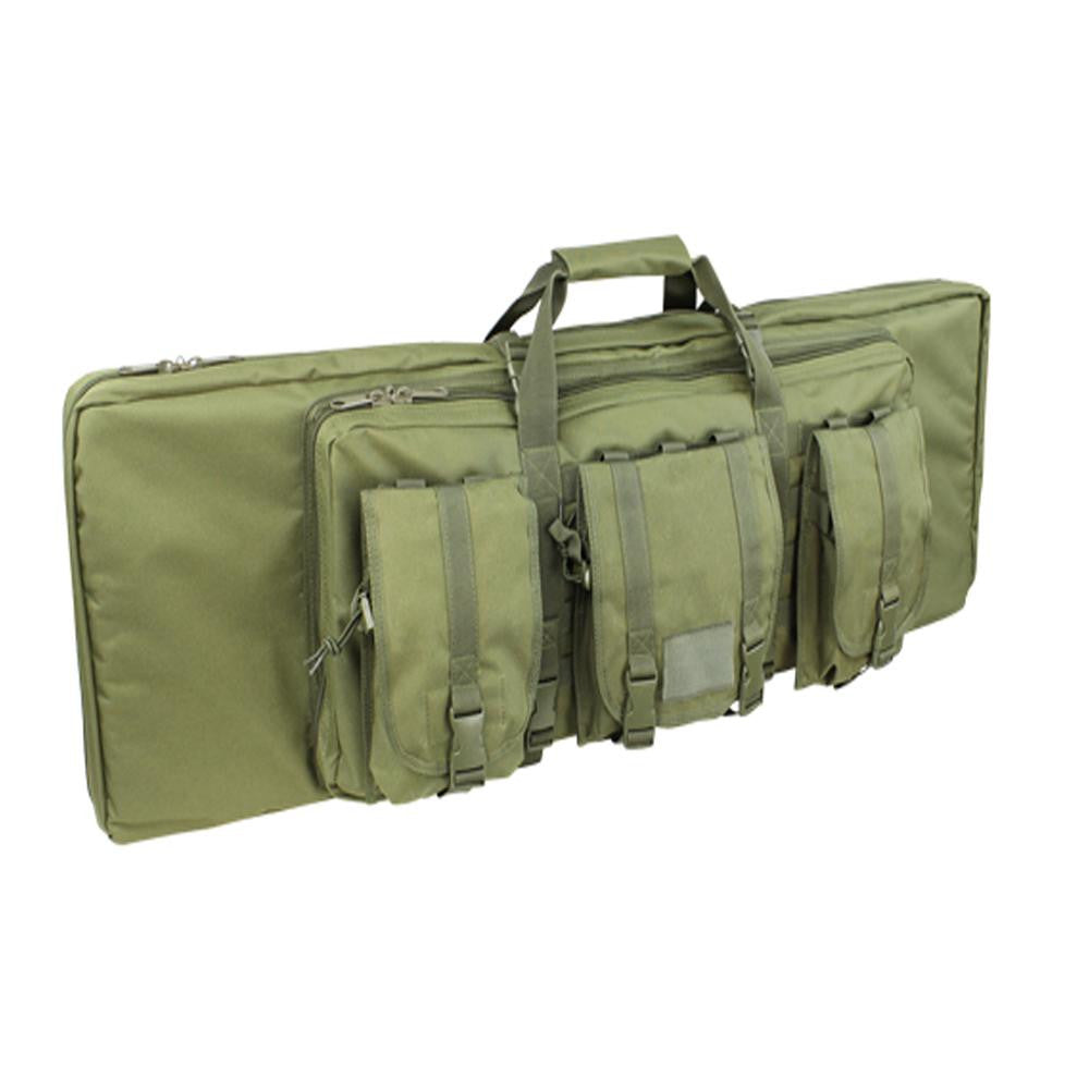 The Condor double rifle cases are designed to carry two primary weapon with the addition 26in compartment for pistol optic SMG or other accessories. It comes with 3 modular pouches that combines to hold up to 14 M4 magazines. The padded divider separates the two rifles and the entire case is fully padded for maximum protection. The double rifle case are available in 36in (151) and 42in (152).