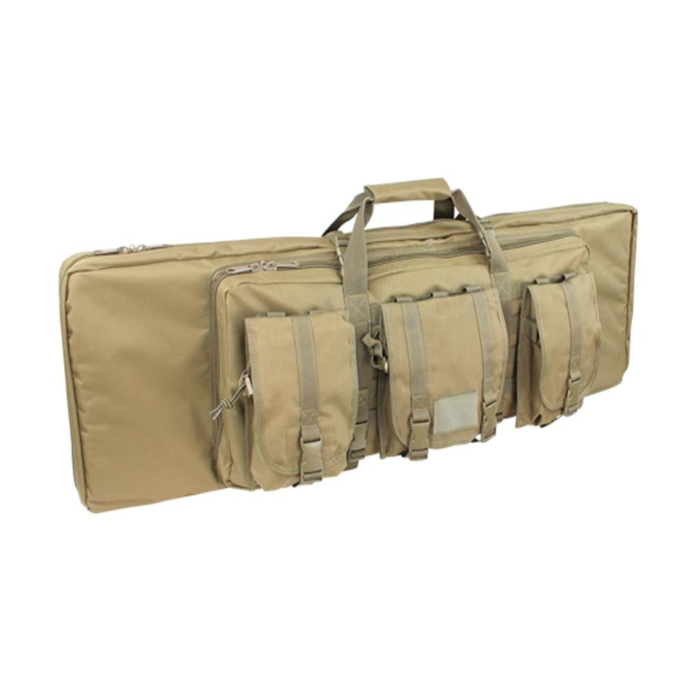 The Condor double rifle cases are designed to carry two primary weapon with the addition 26in compartment for pistol optic SMG or other accessories. It comes with 3 modular pouches that combines to hold up to 14 M4 magazines. The padded divider separates the two rifles and the entire case is fully padded for maximum protection. The double rifle case are available in 36in (151) and 42in (152).