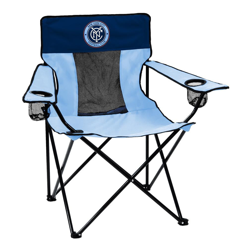 Seating area measures 22 x 34.5 x 34.5 with double layered 600 denier polyester. Features two adjustable arm rests with cup holders on each arm. Mesh material in middle allows for breathability. Logo featured on the front and back of headrest and the carrying bag. Seats up to 250 lbs.