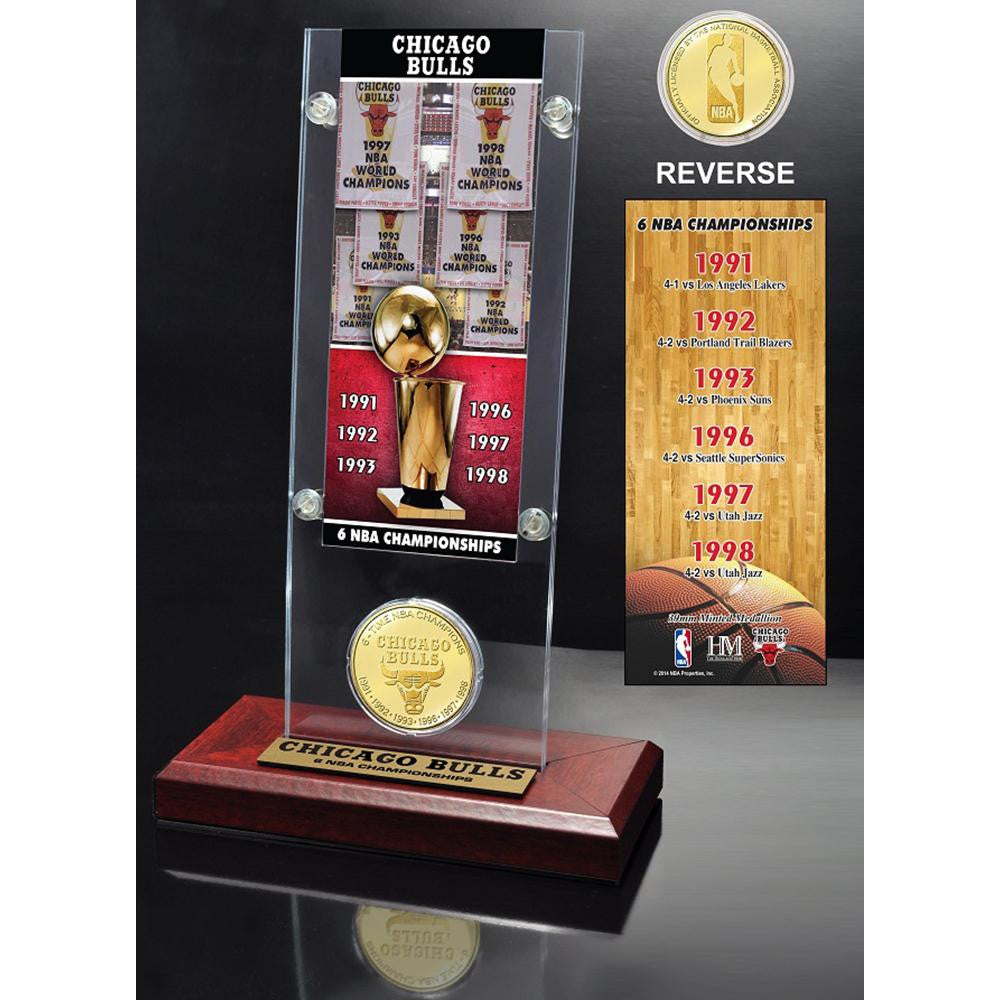 Chicago Bulls 6-time NBA Champions Ticket & Bronze Coin Acrylic Desk Top