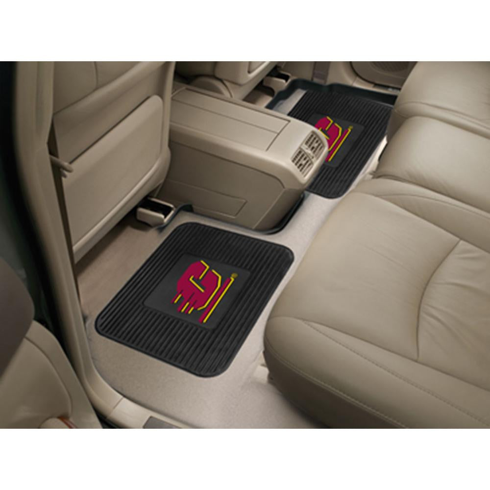 Boast your team colors with backseat utility mats by FANMATS. High quality and durable rubber construction with your favorite team's logo permanently molded in the center. Non-skid backing ensures a rugged and safe product. Due to its versatile design utility mats can be used as automotive rear floor mats for cars, trucks, and SUVs, door mats, or workbench mats. Now comes in a 2 Pack!