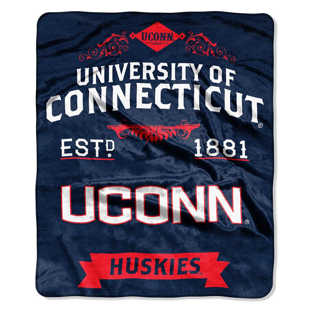 Connecticut Huskies NCAA Royal Plush Raschel Blanket (Label Series) (50x60)
