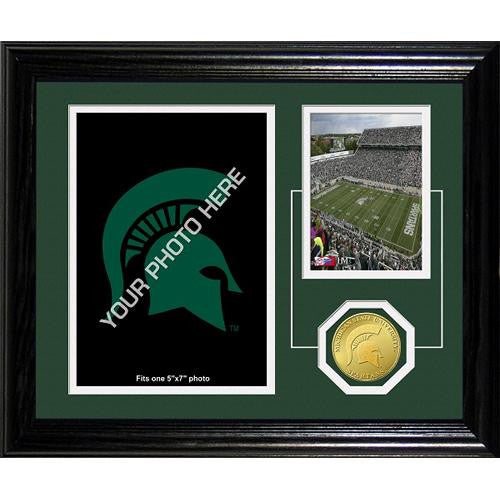 A 10in x 12in Frame with a removable Easel back and double matting displays your favorite Schools Stadium and a Minted School Commemorative Coin to go along with your own 5in x 7in photo. Officially Licensed by the CLC and proudly made in the USA by The Highland Mint.