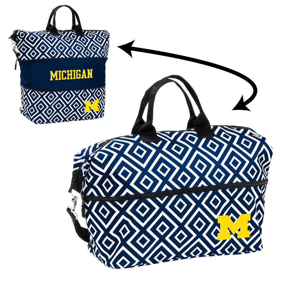 This multipurpose tote is perfect for your weekend adventures. Measuring 25? x 9? x 15? it provides plenty of storage space. Need more space? Just unzip the expandable section and gain an extra 7 inches of storage. This bag features team colored chevron with screenprinted team logos in two separate locations. Shoulder strap included.