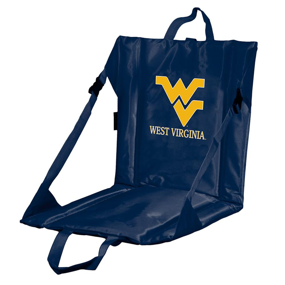 Nylon fabric with padded cushion 16 L x 14.5 W seat and cushioned back support. Features velcro strap to secure seat to bleacher and adjustable reclining straps. School logos on front and back of seat. Velcro closing strap and durable handle on top for easy carry.