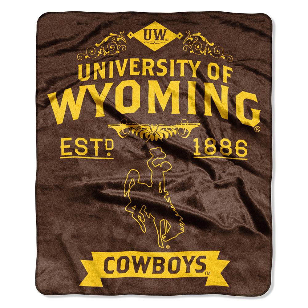 Wyoming Cowboys NCAA Royal Plush Raschel Blanket (Label Series) (50x60)