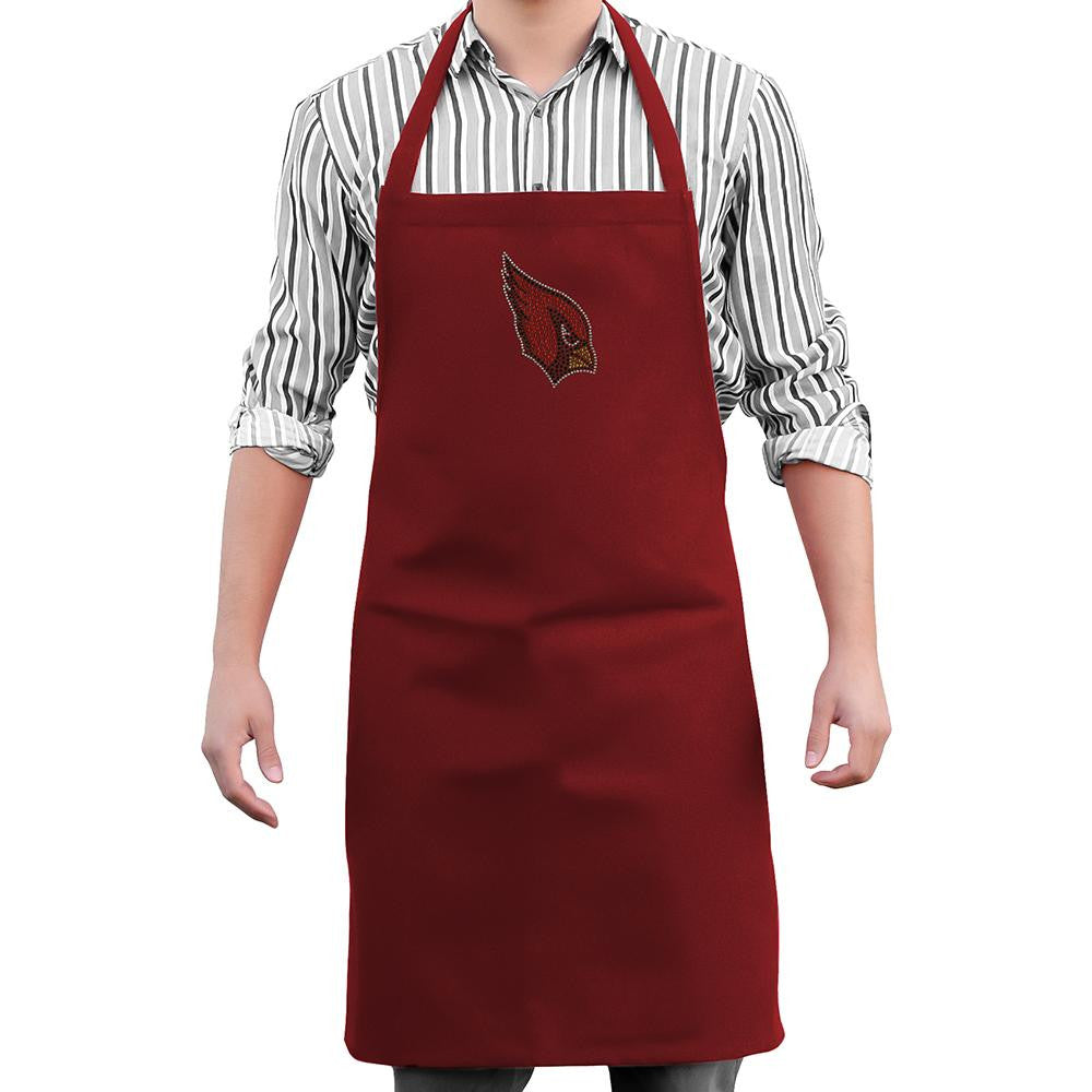 Look fabulous while serving up victory at your homegating event! This heavy duty cotton/poly blend apron showcases your favorite team in team color and hundreds of crystals.One size fits most.