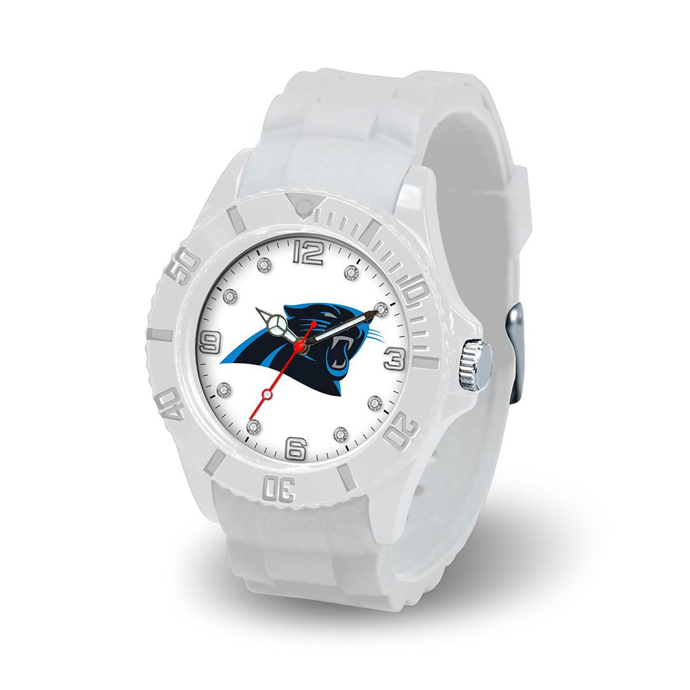The Sparo Cloud Watch has a supple rubber sports strap with a sports buckle. Scratch resistant mineral crystal lens. Precision quartz movement. Silver numbers and florescent hands make it easy to read. The back is stainless steel and the watch is water/shock resistant up to 2 ATM's. Limited Lifetime Warranty. Officially licensed team logos and colors.