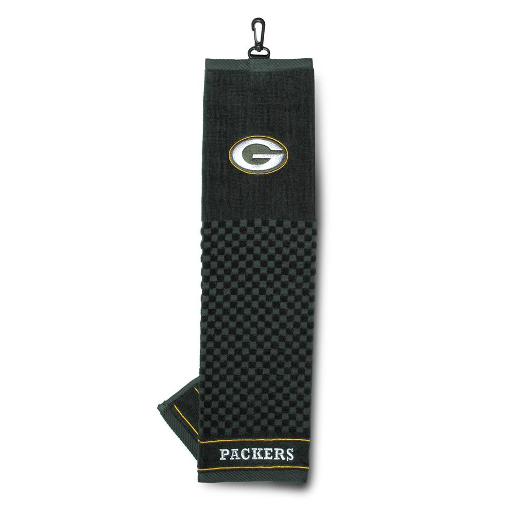 This 16 x 22 100% cotton tri-folded embroidered towel is unmatched and includes an attractive scrubber pattern for easier club cleaning black swivel clip for easy attachment to any golf bag top embroidered team logo and bottom team name embroidery.
