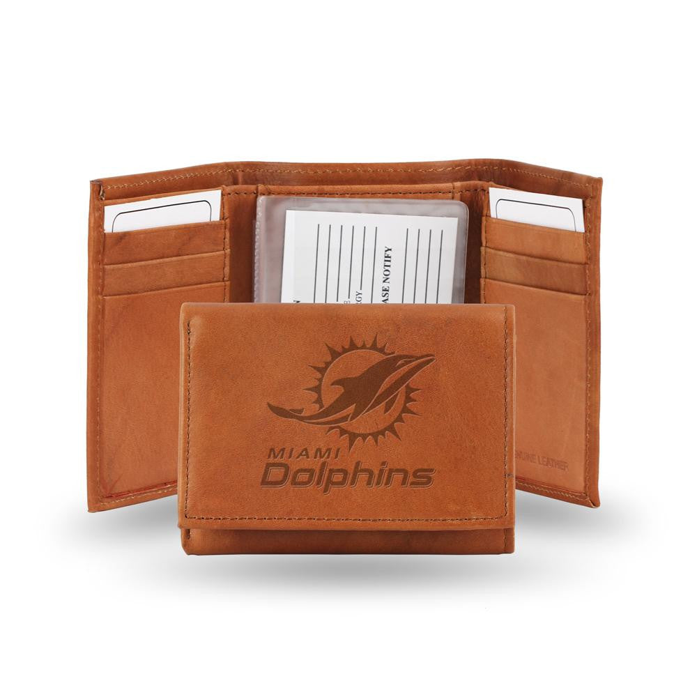 Miami Dolphins NFL Tri-Fold Wallet (Pecan Cowhide)