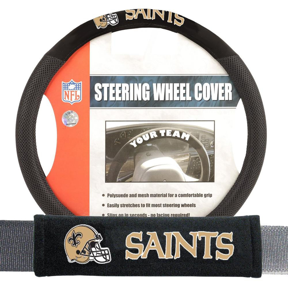 New Orleans Saints NFL Steering Wheel Cover and Seatbelt Pad Auto Deluxe Kit