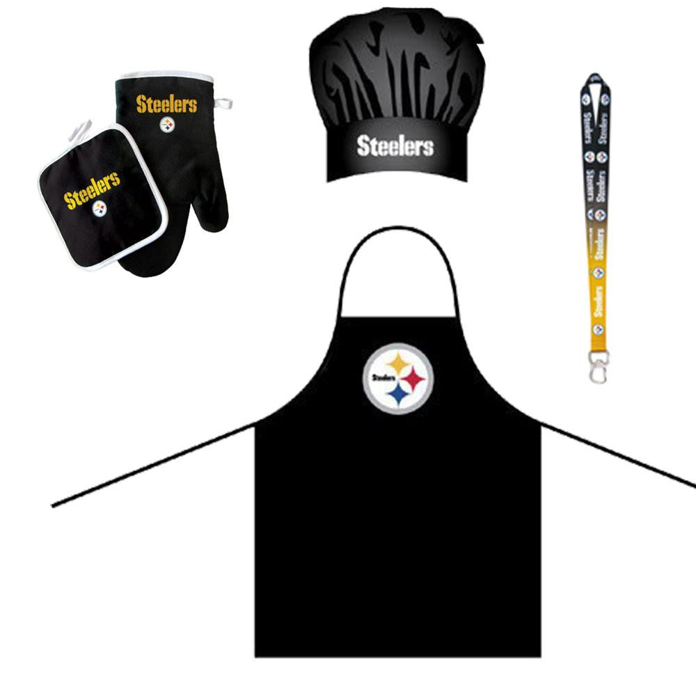 Pittsburgh Steelers NFL Barbeque Apron and Chef's Hat and Oven Mitt with Bottle Opener