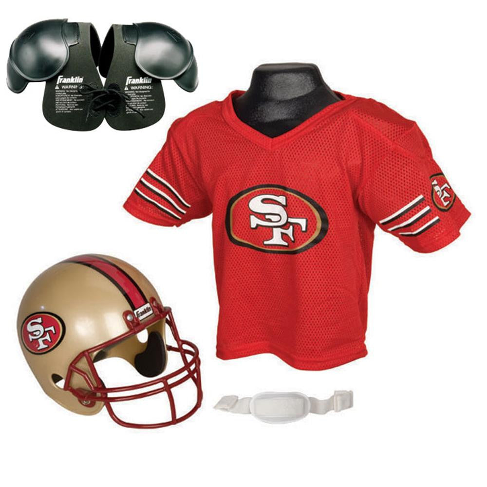 San Francisco 49ers Youth NFL Helmet and Jersey SET with Shoulder Pads