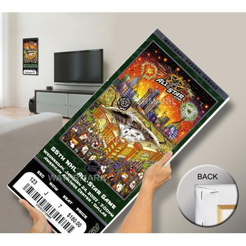 Officially licensed by the NHL Mega Tickets are cutting-edge wall art. They are created from authentic game tickets enlarged 500% printed on archival canvas and professionally stretch-mounted. Perfect for autographs. NHL and the NHL Shield are registered trademarks of the National Hockey League. All NHL logos and marks and NHL team logos and marks depicted herein are the property of the NHL and the respective teams and may not be reproduced without the prior written consent of NHL EnterprisesL.P. e NHL 2011.All Rights Reserved. Overall Size: 15(W) x32(H) x0.75(D).