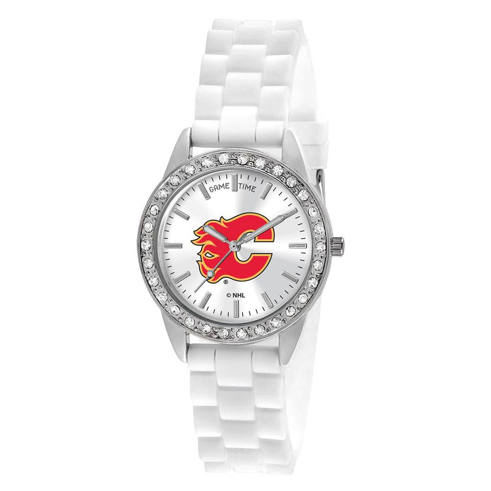 Hopefully your team's hotter than this frosty watch from Game Time! The Women's Frost Watch feature's an official team logo. Your team's color logo will stand out beautifully surrounded by the silver tone case and white silicone band. This is a must have for the female fan that's passionate about her sports team! Features: Stainless steel caseback. Silicone strap. Japan quartz movement. Sunray dial. Case size: 38mm. Water resistant to 3 ATM (99 ft.). Limited lifetime warranty. Officially licensed.