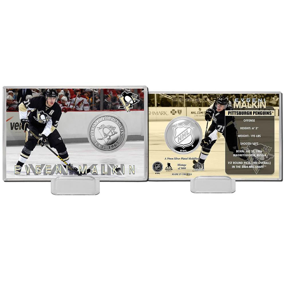 Limited edition! The minted 39mm NHL Player silver plated commemorative coin is minted to highest standards in minting tradition! The coin is protected in a 4?x6? acrylic case. The case includes a commemorative design on both sides and each coin card is delivered with a stand. Limited Edition of 5,000 and officially licensed by the NHL and NHLPA. Proudly made in the U.S.A.by The Highland Mint!!