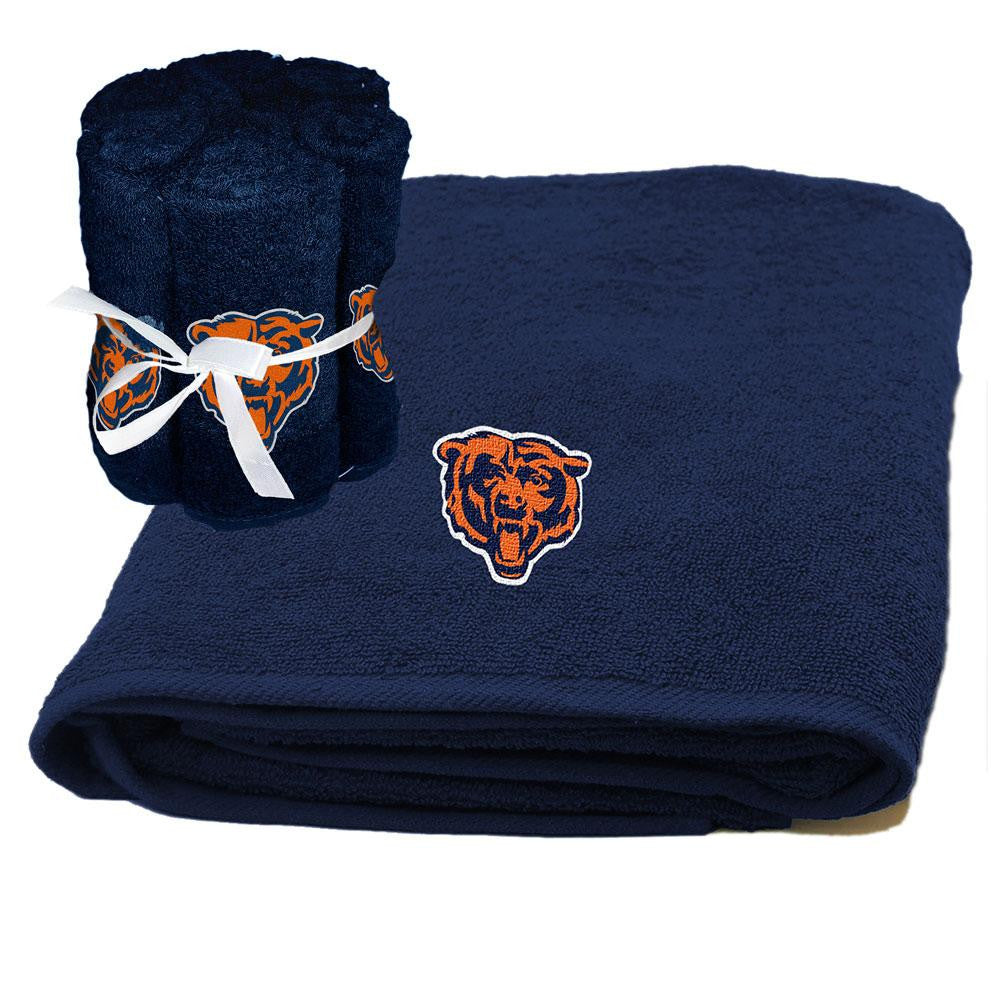 Decorate your bathroom and show your team spirit with this NFL Applique Bath Towel and 6 Pack Washcloth Set by The Northwest Company. The 100% Cotton bath towel and washcloths are bold and colored according to your favorite sports team colors. They are also decorated with an embroidered applique team logo. The bath towel measures 25in x 50in. Washcloths measure 12in x 12in and come in a pack of 6. All are machine washable.