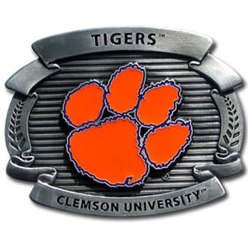 Our college oversized belt buckle is carved and enameled in team colors. Features fine detailing and distinctive background. Measure 4 x 3 3/8.