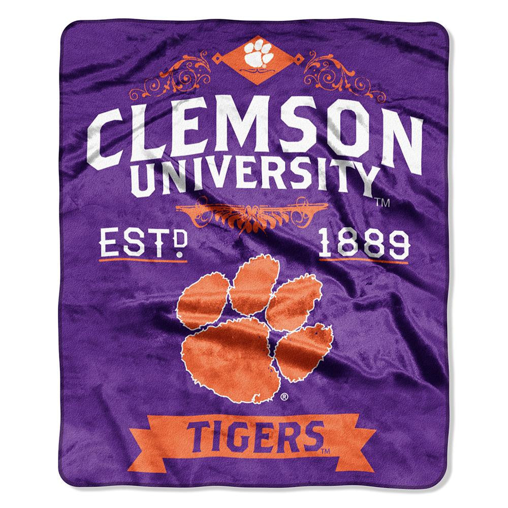 Clemson Tigers NCAA Royal Plush Raschel Blanket (Label Series) (50x60)