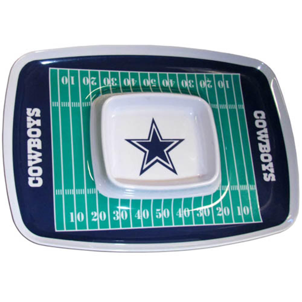 Add an extra kick to your game day dip with Siskiyou?s Dallas Cowboys Melamine Chip and Dip Tray! This tray will add that extra touch of team spirit for your watch party or tailgate. 17?x12? Allows plenty of room for chips, veggies and dip to go around the convenient dip bowl located in the center of the tray. Tray is Dishwasher safe.