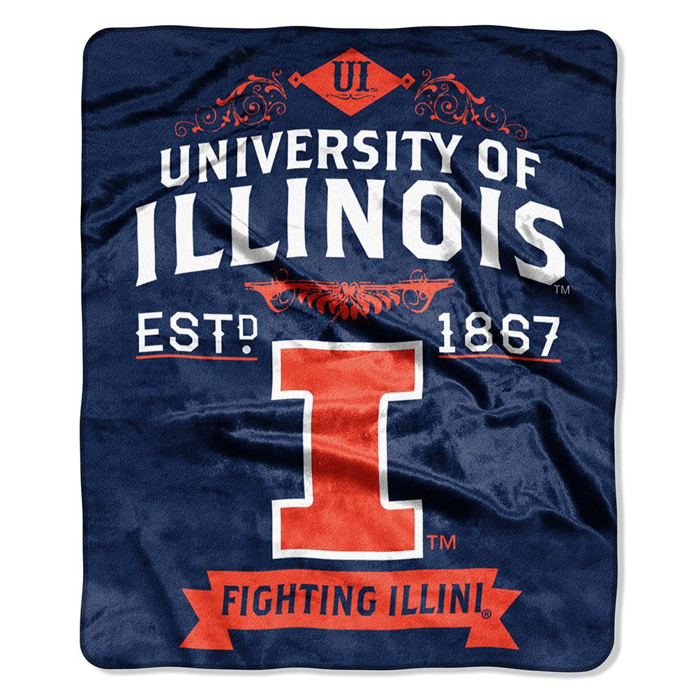 Illinois Fighting Illini NCAA Royal Plush Raschel Blanket (Label Series) (50x60)