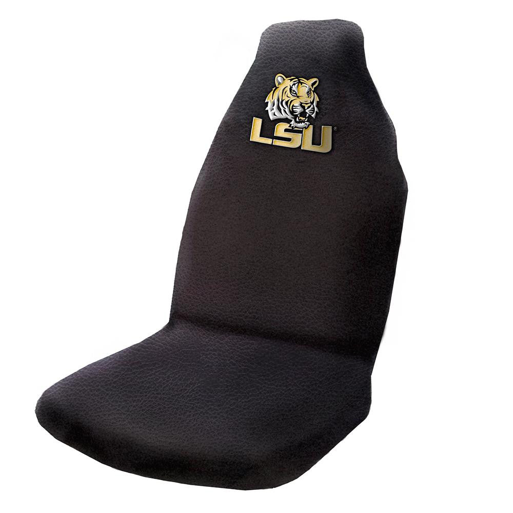 Make yourself an honorary team member and ride in style with a bucket seat, form fitting NCAA car seat cover by Northwest. The cover, which slips on easily over the cars seat and has backstraps for a more secure fit, has the added benefit of soft padding along the seat and back for a more comfortable feel. The teams logo is a large, padded embroidery that makes a stunning statement to passersby even when you are not around. Fits up to seats with measurements of 50in x 20in.