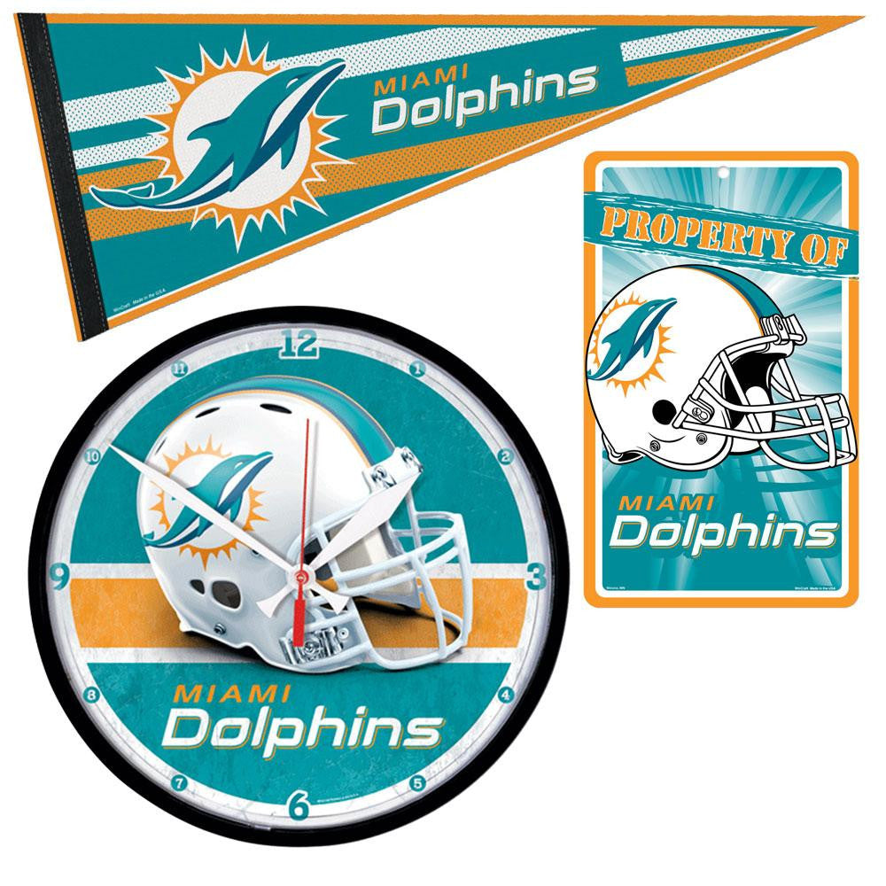 Miami Dolphins NFL Ultimate Clock, Pennant and Wall Sign Gift Set